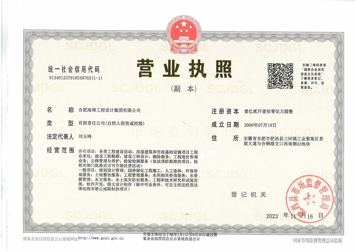 合肥海博工程設計集團有限公司,成立于2007年,坐落于合肥市肥西縣經開區延喬路與長古路交口聯?!ぴ苿摳郏ńㄖ娣e3.3萬㎡),是業務涵蓋勘察、設計、施工、生態園林、智能建造、地產運營六大領域的綜合性企業,為合肥市首批工程總承包試點企業。