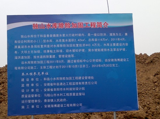 10月20日上午,馬鞍山市水利質(zhì)檢站專家對(duì)由我公司承建的和縣兩座?。ㄒ唬┬退畮?kù)獨(dú)山水庫(kù)和大金莊水庫(kù)除險(xiǎn)加固工程的重要關(guān)鍵部位放水底涵基槽進(jìn)行了驗(yàn)收。
