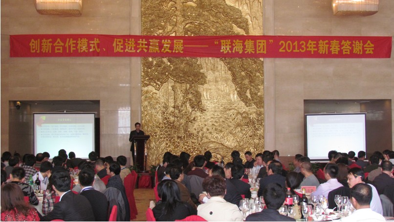 2013年3月9日,“聯海集團”2013年新春答謝會在合肥市翡翠湖迎賓館勝利舉行,本次會議是在集團公司順利完成集團組織架構和職能的優化調整、“海博產業園”全面建成既“聯海大廈”落成并順利入駐、海博公司成功晉升市政總承包一級資質這三件大事勝利完成的大背景召開的一次盛會。集團公司領導、集團職能部門相關人員、各分公司負責人、部分項目部負責人和嘉賓等近300人參加了會議。此次會議的主要議題是:通報集團公司在2012年取得了振奮人心的成績、答謝長期關心、支持和信任“聯海集團”的各界朋友;宣貫集團公司關于“創新合作模式、促進共贏發展”若干措施等。
