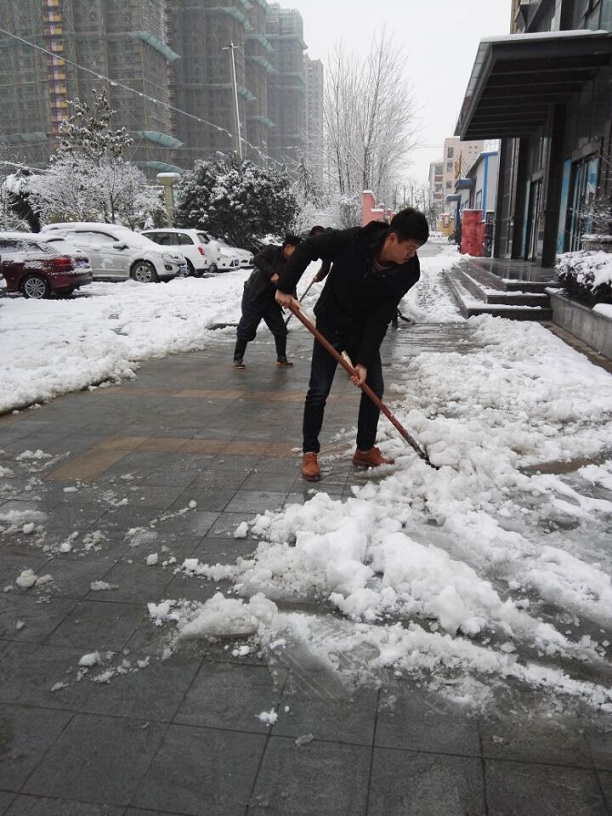 5日早晨,管理公司張總、物業部孔經理親自組織本版塊成員采取鐵鍬鏟雪、掃帚掃雪、水管沖雪等方式為大家開辟道路。在白雪皚皚的清晨,銀裝素裹的產業園中,鐵鍬與掃帚的勞作聲,似乎燃起了大家內心的火熱,吸引著更多的聯海同仁自發的參與其中,感謝這些可愛的聯海人,讓我們為這些“開路者”點贊!