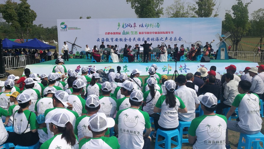 活動首先是欣賞集團云海教育板塊為合肥市第四屆森林·生態(tài)旅游節(jié)暨官亭林海風(fēng)車節(jié)精心呈現(xiàn)的云海教育安徽金音民族樂團林海之聲音樂會,不僅有云海教育的老師們載歌載舞,還邀請了眾多民間藝術(shù)家為本次音樂會增光放彩。