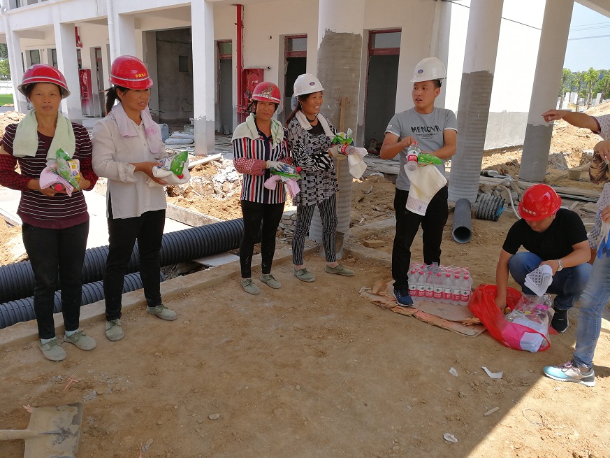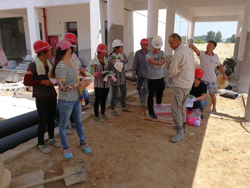 夏日驕陽似火,酷熱難耐,我司駐項(xiàng)目人員依然奮戰(zhàn)在施工第一線,戰(zhàn)高溫,斗酷暑。公司十分重視駐場人員的身心健康,近期開展了夏季送清涼活動,慰問在酷暑中堅(jiān)守崗位、辛勤勞動的一線職工,為他們送去毛巾、香皂、仁丹、菊花茶、礦泉水、西瓜等防暑降溫用品,讓他們在炎炎夏日中感受到一陣“清涼”。