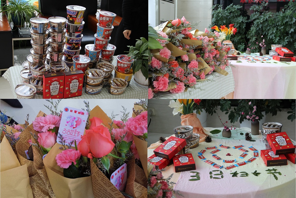 一句溫馨的祝福語“女神,節日快樂!”,一束嬌艷的花朵,一盒甜甜的禮品,一對陽光的帥小伙,迎接著緩緩走進來的聯海女神們。