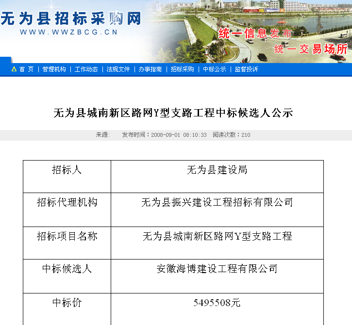 無為縣城南新區路網Y型支路工程是無為縣建設局08年重點工程。我公司在眾多競爭對手中脫穎而出,奪得承包權。